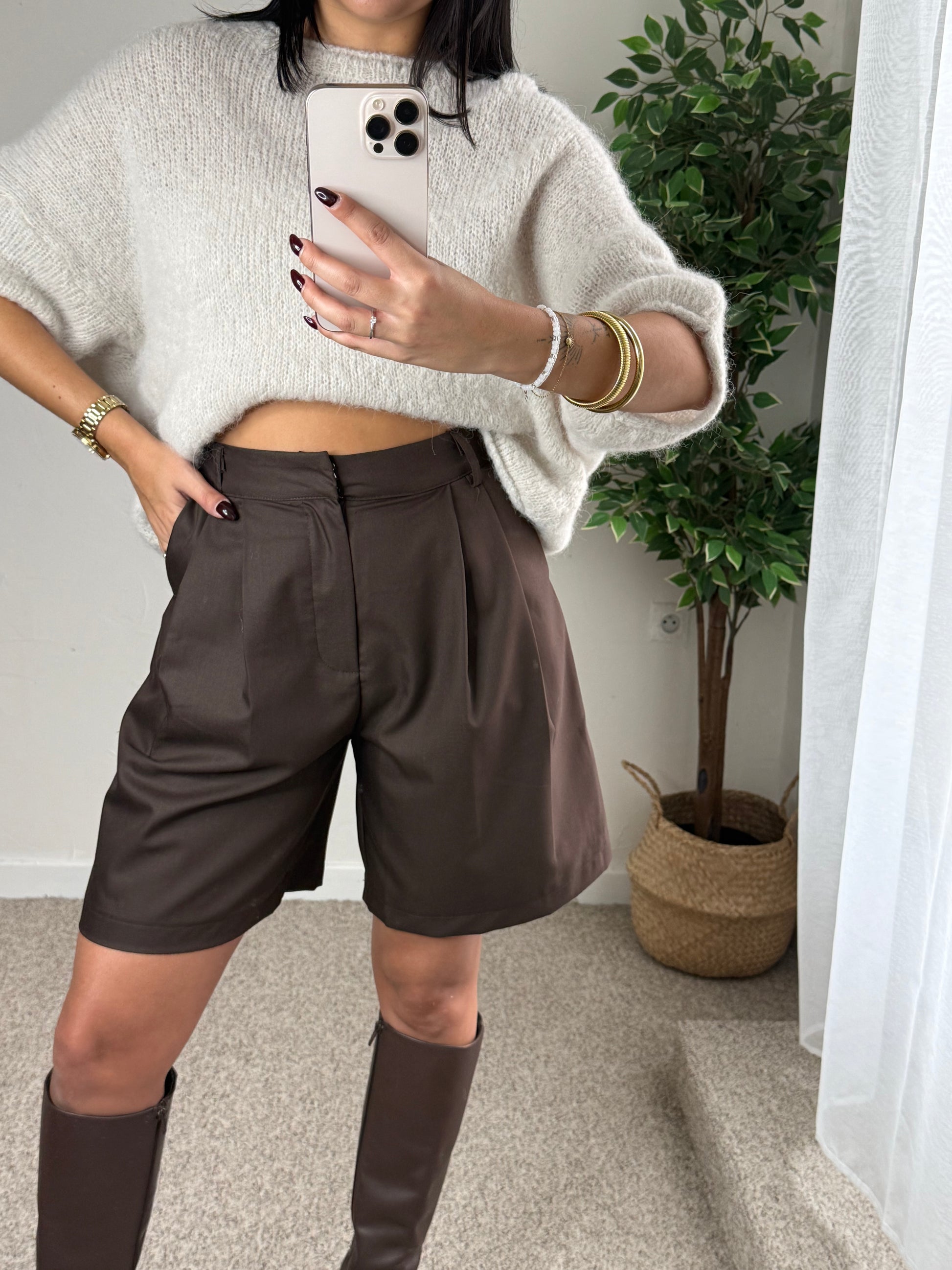 - Taille haute avec plis marqués pour une silhouette affinée et élégante