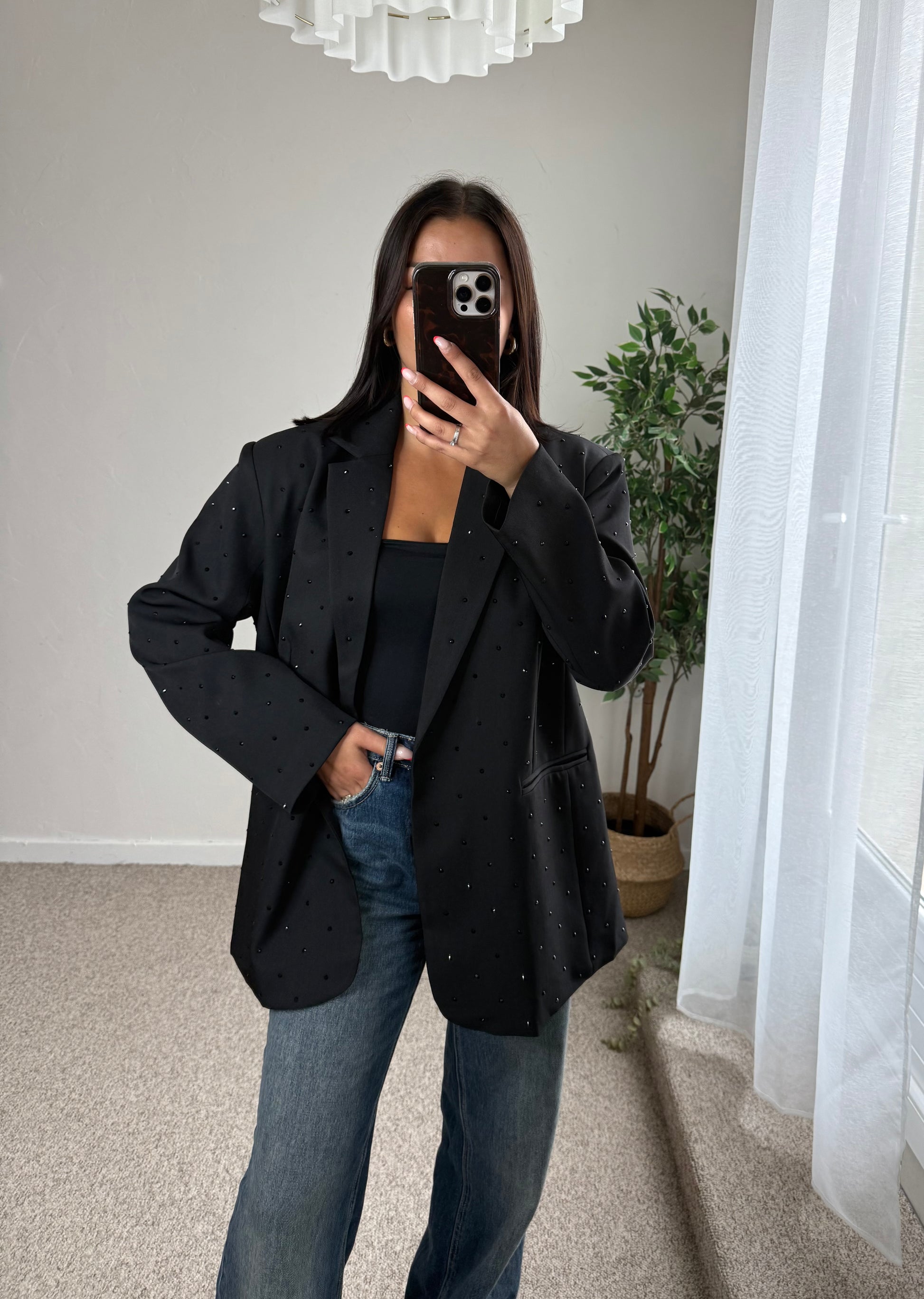 - Petit strass noirs incrusté sur l’ensemble du Blazer