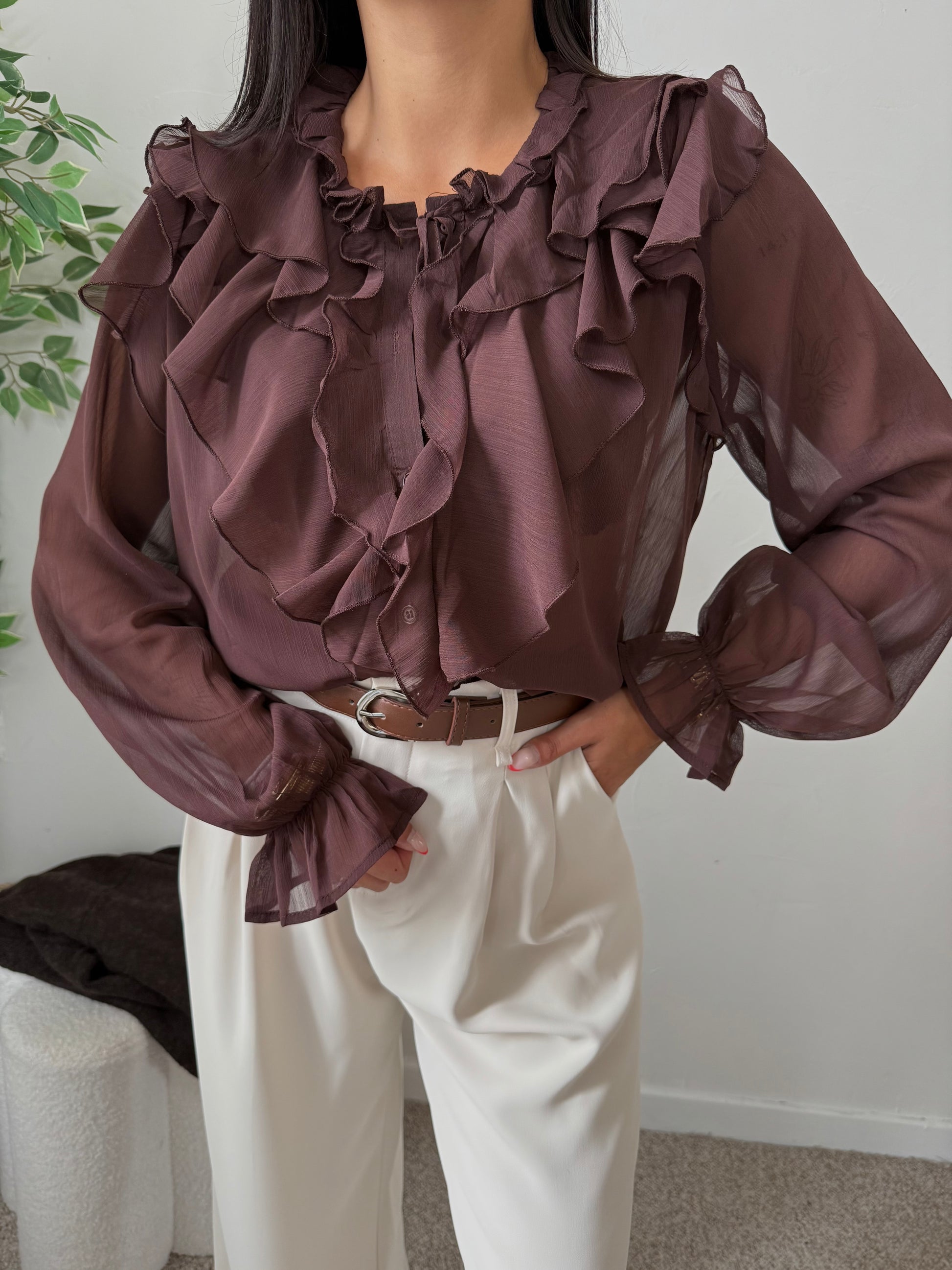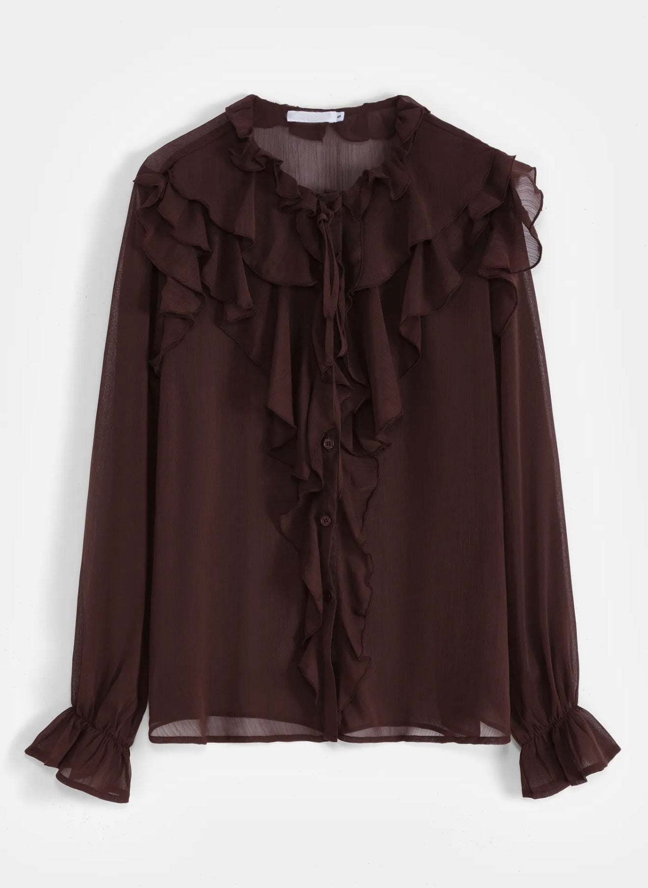 - Manches longues légèrement transparentes avec poignets élastiques et finition volantée