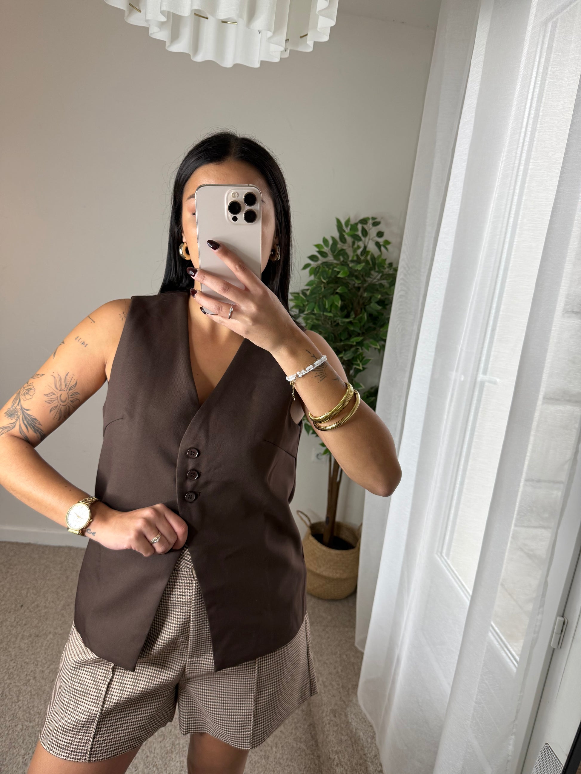 - Haut sans manches couleur marron