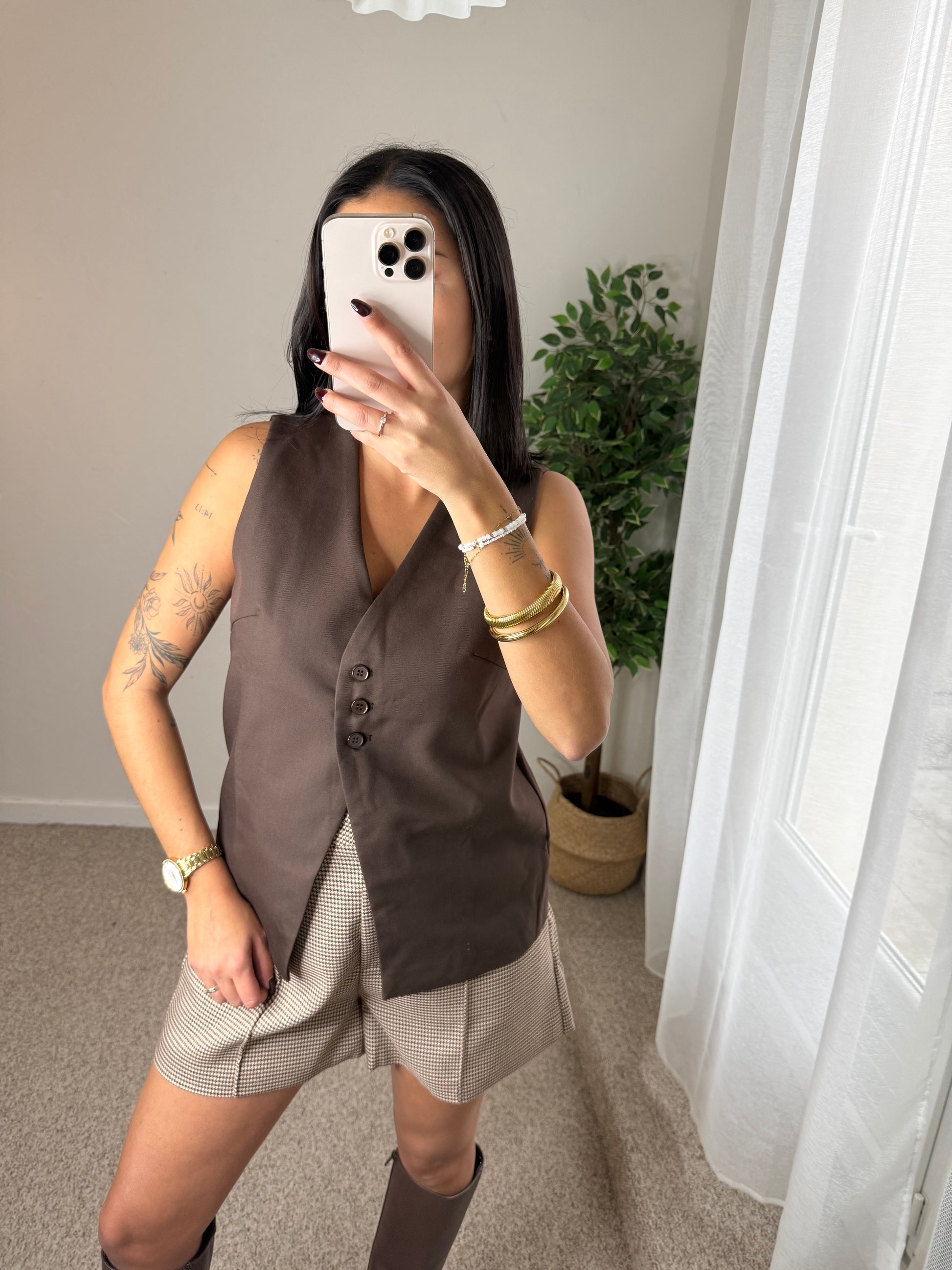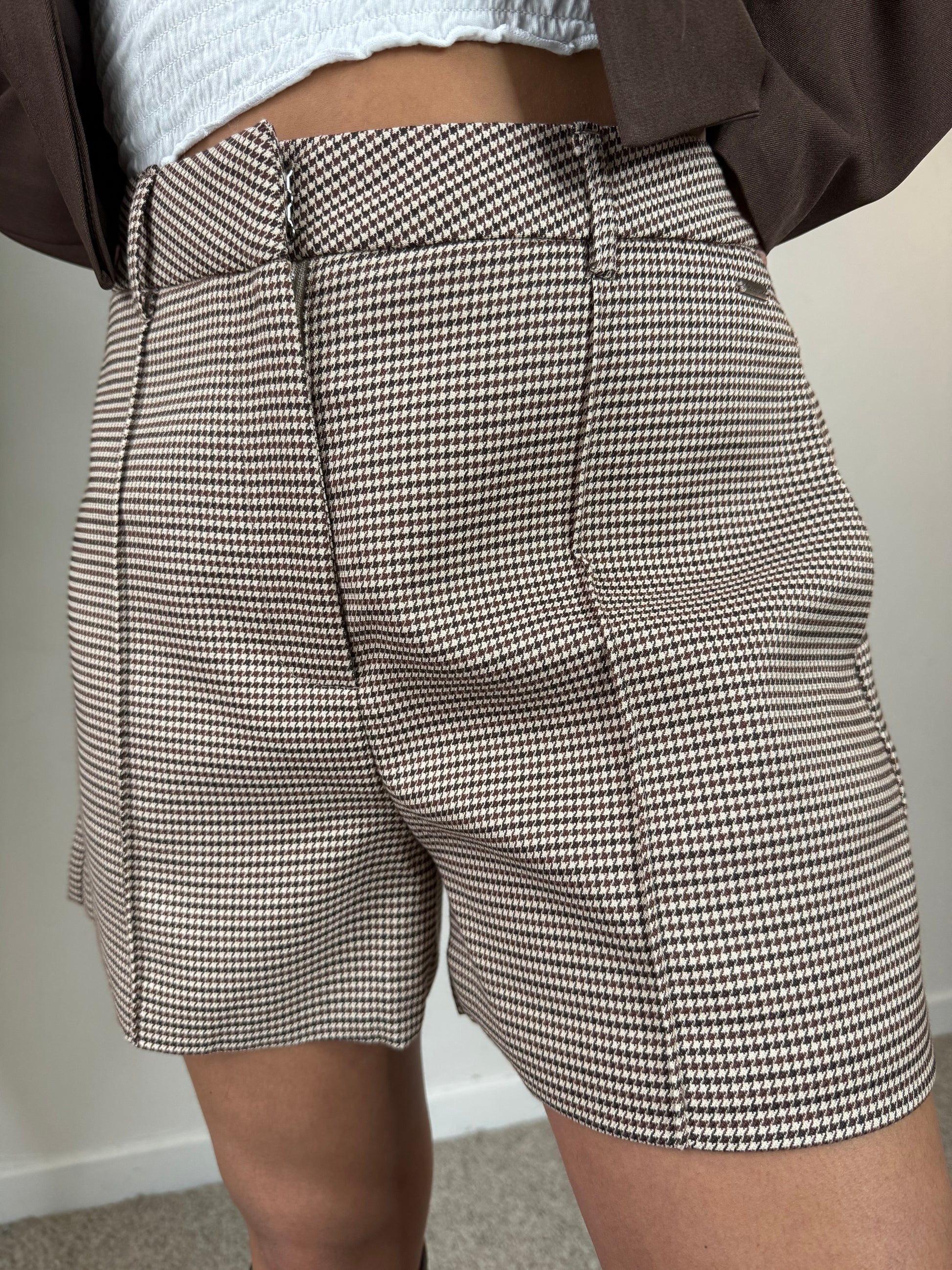 - Short à carreaux beige et marron