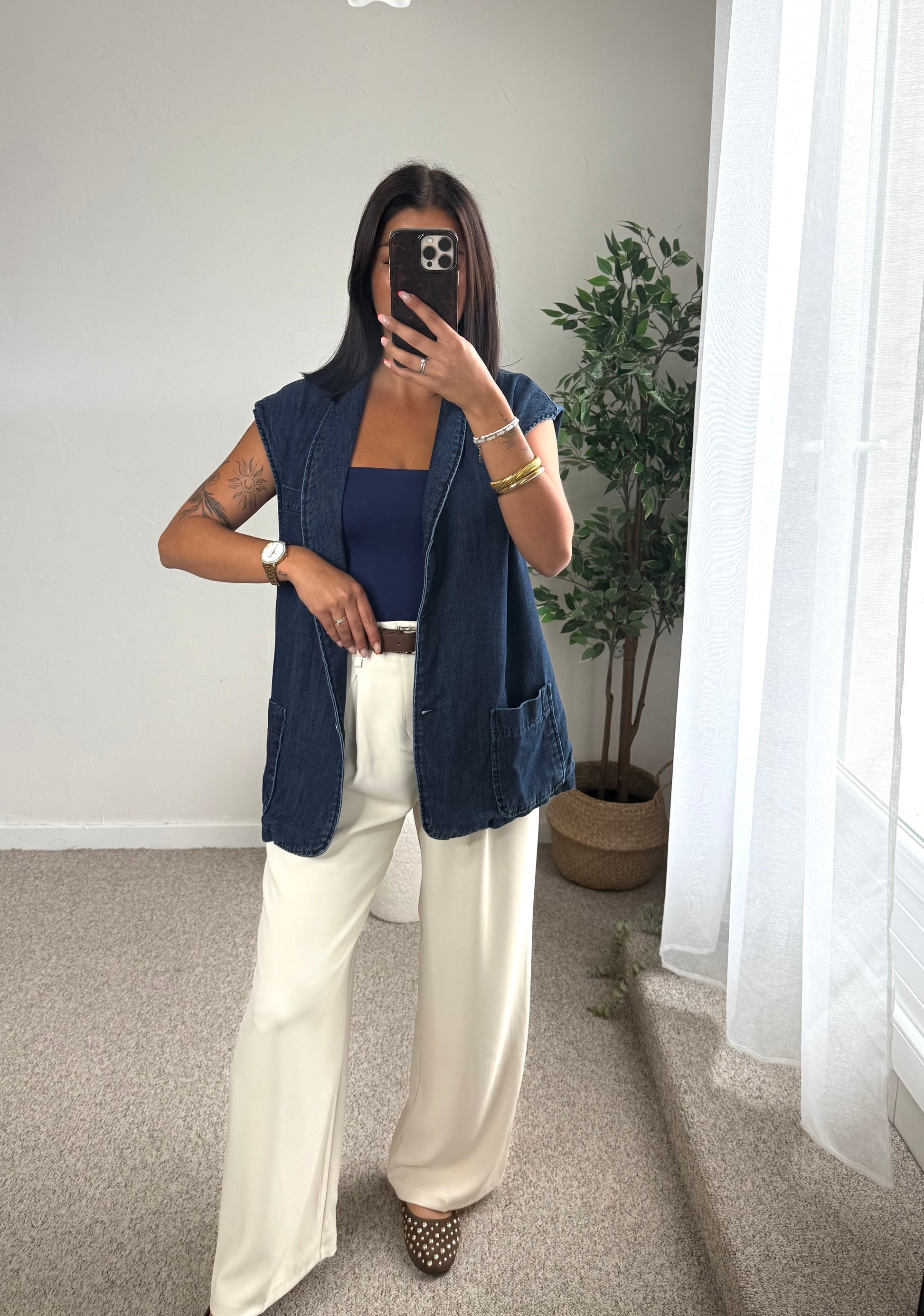 - Gilet sans manches, coupe droite et légèrement oversize